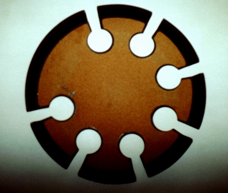 (16" diameter, molded brown plastic and cork, used by Bunnies in Clubs, says "PLAYBOY" on back)